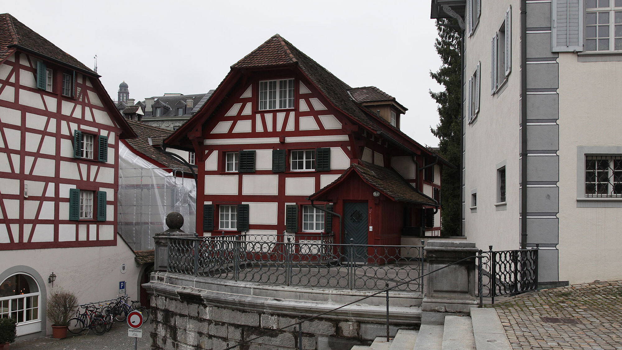 Mehrere Chorherrenhäuser sind in der Nähe der Hofkirche angelegt. Beim Aufgang zur Hofkirche stehen drei Chorherrenhäuser: